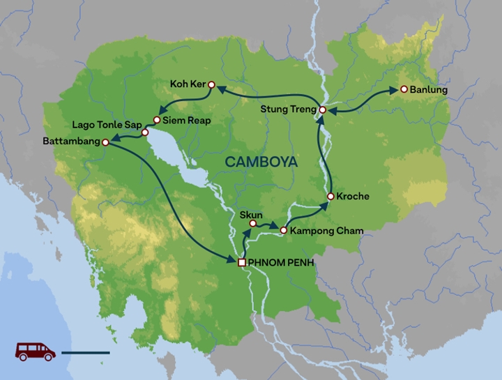 | 4 | Kampong Cham – Isla de Koh Tong - Kroche | D | Hotel |
